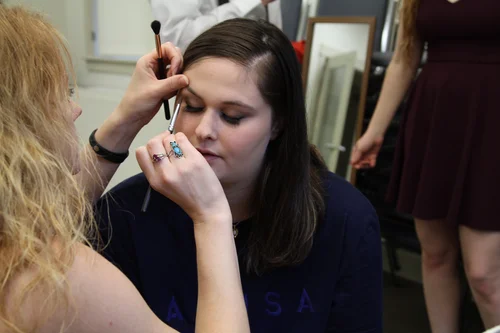 I love when a photographer gives me images such as these. I love the juxtaposition of the calm and poise on my client's face mirrored against the action of makeup artistry. It’s in this moment -- before any event -- where my clients can just breath and relax, while everything else just happens for them.